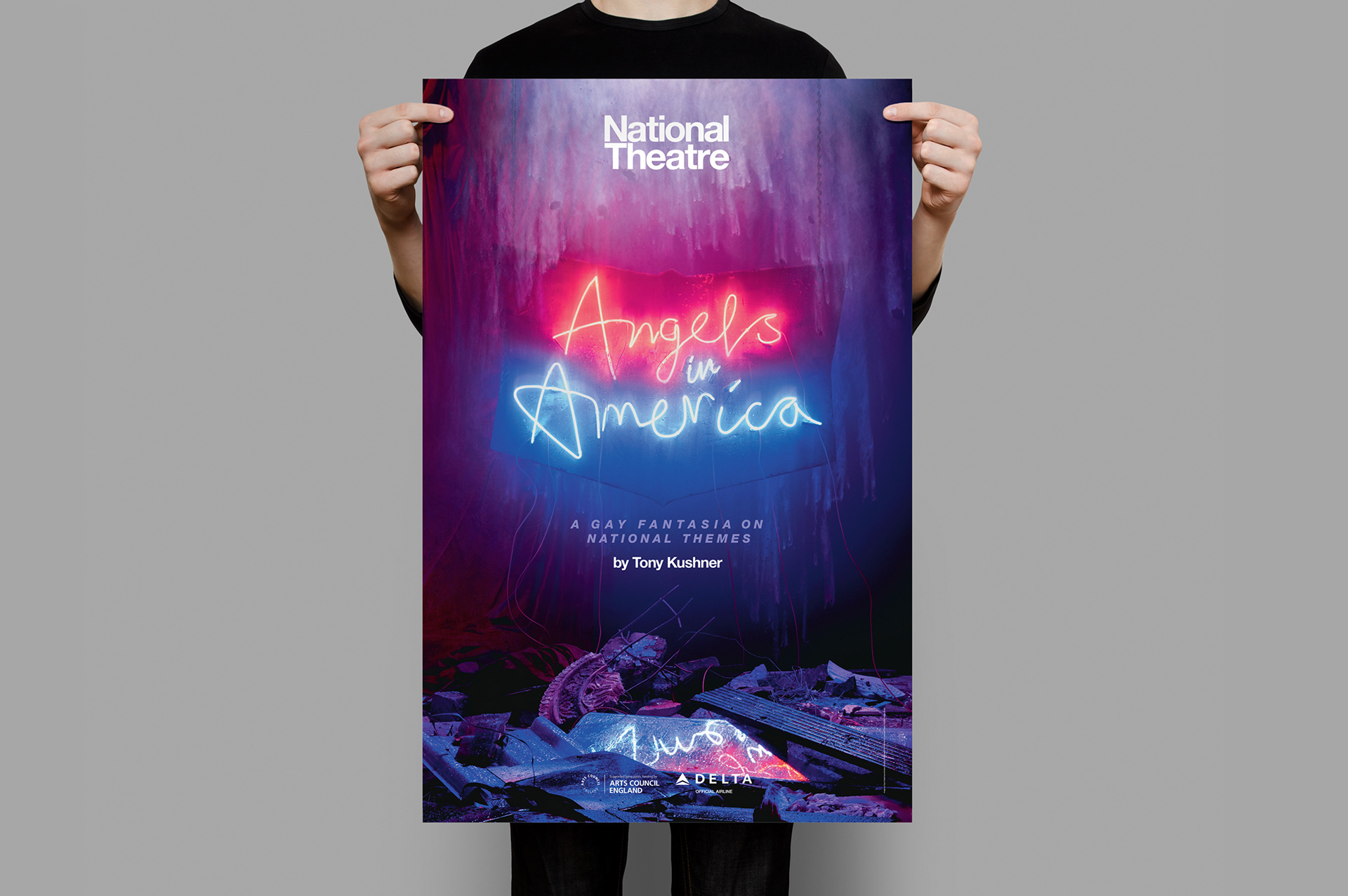 I created a two-pronged approach to the campaign based around place and identity. I commissioned Ryan Hopkinson to shoot a scene-setting image for the play, based on the idea of 'plastic neon angels' and Jason Bell shot the cast of characters as if they inhabited that same world.